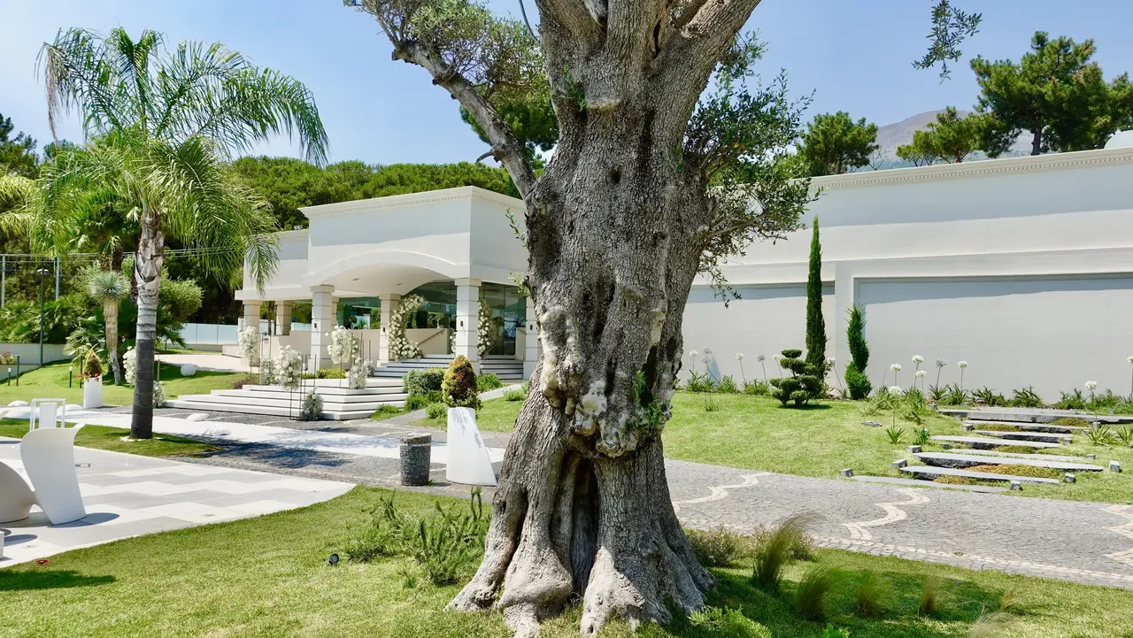 La hall di oltre 300 mq, la terrazza panoramica, le piscine a sfioro, il gazebo immerso nel verde: ogni spazio è pensato per accogliere, stupire e celebrare.